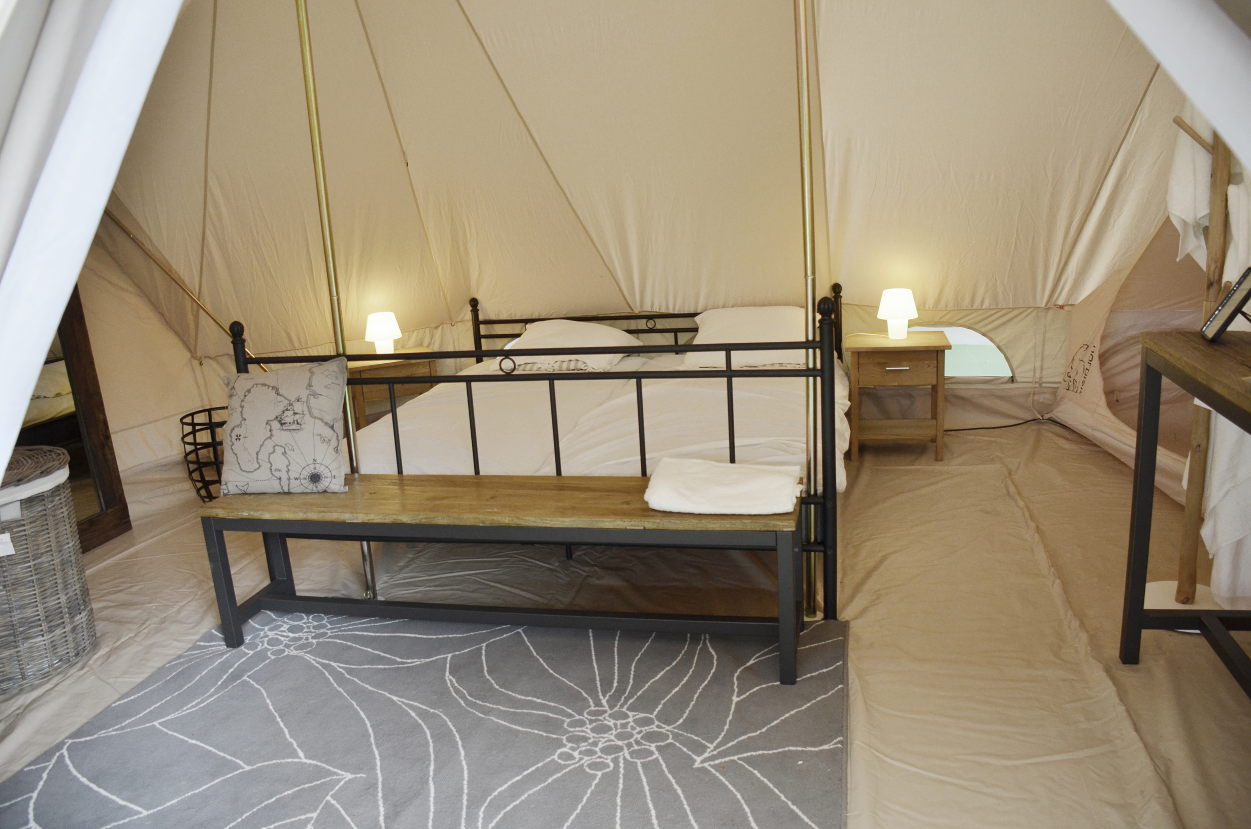 De basis van glamping is een ruime tent. Nordisk Legacy is een collectie ruime katoenen tenten in originele vormen zoals een tipi, een klokvorm, een padvinderstent, en een klassieke familiale cottage tent. De tenten zijn hoog genoeg om rechtop te kunnen staan en stevig genoeg om te worden ingericht met echte meubels. Het katoen heeft een waterafstotende behandeling gekregen om de zomerregen te kunnen weerstaan. Klassieke katoenen tenten hebben een geweldig binnenklimaat. Katoen is een natuurlijk materiaal en de ruime tenten met grote deuropeningen kunnen goed worden geventileerd. De lucht voelt fris, zelfs als je ’s morgens wakker wordt. Mesh in de binnentent en aan de openingen houden muggen op een veilige afstand.