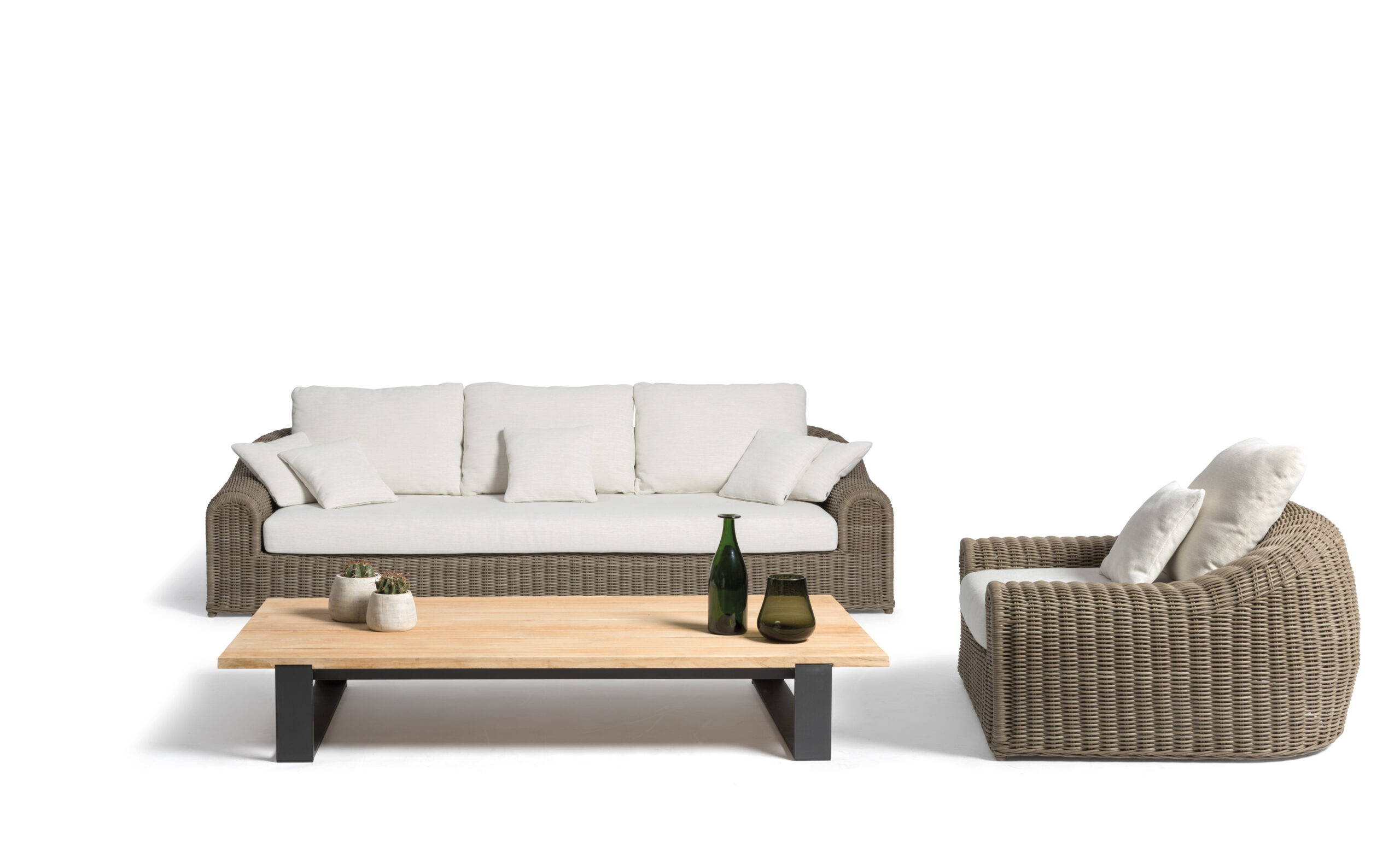 Rotan, cactussen en bamboe — de toppers uit de fifties — zijn helemaal terug van weggeweest. De loungestoel uit Manutti’s collectie River bijvoorbeeld is een eigentijdse variant op de klassieke rotanfauteuil die bestand is tegen weer, wind en de tand des tijds.
