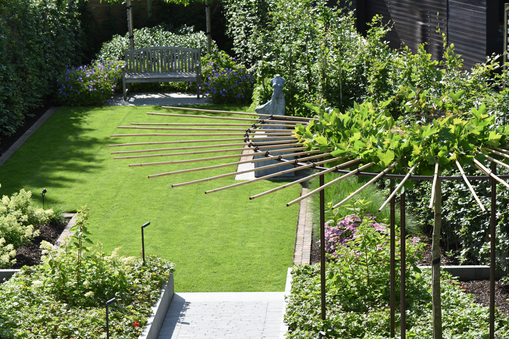 Van zandberg tot bouwwerf, Norbert Liekens en zijn team maken van elk perceel een klein paradijs. Hun visitekaartje? Natuurlijke schaduwmakers op maat gemaakt voor elk soort tuin en uiteraard naar wens van de klant. Tuinen met dat ietsje meer, dat kun je verwachten als je een beroep doet op Tuinaanleg Liekens. Na 36 jaar lang grote en kleine tuinen aangelegd te hebben, weet zaakvoerder Norbert wat kwaliteit is. Hij gebruikt materialen en technieken die zorgen voor jaren gebruiksgenot. Met zijn team van drie vaste werknemers voor de aanleg en het onderhoud, creëert hij dagelijks bloemrijke en paradijselijke tuinen waarin je in alle seizoenen heerlijk kan relaxen. Door de nodige aandacht te schenken aan grondontleding en -verbetering, krijgt de klant in een wip een bloeiend en mooi resultaat. Natuurlijke schaduwmakers Of het nu een grote of een kleine tuin is, een plek om heerlijk te genieten in de schaduw heeft elke tuin nodig. Je kan opteren voor een parasol, een zeil of zelfs een lamellendak, maar als het van Norbert afhangt, zorgt hij voor een natuurlijke schaduwmaker in elke tuin. Bovendien is het in de schaduw van een boom steeds nog frisser vertoeven dan in een artificiële schaduw. “Een terras onder een leiplant of -boom is de eyecatcher van de tuin! Wij zijn gespecialiseerd in het op maat maken van verschillende dakvormen. Het ontwerp wordt uitgetekend, waarna uitgezet op de grond. We plooien de metalen constructie zelf en gieten deze in beton. Daarna wordt er een leiboom of -plant aangeplant en langsheen de constructie geleid. Het aangroeien duurt natuurlijk enige tijd maar daarna heb je jaren genot van je natuurlijk schaduwhoekje.” Partijtje petanque met familie en vrienden ‘Hygge’ zo heet het nieuwe recept voor geluk. Het Deense woord is niet te vertalen maar kan je verwoorden als gezelligheid, samen thuis doorbrengen met vrienden, geluk vinden in de kleine dingen. Dat vertaalt zich ook naar de tuin “Dat is waar de toekomst om draait”, zegt Norbert. “Meer en meer krijgen we de aanvraag om sport- en speelvelden te integreren in de tuin. Veel liever dan met de kinderen naar een pretpark te gaan, spelen mensen graag samen met vrienden en familie een partijtje kubb of petanque in hun eigen tuin.” Het is al een tijdje een trend om van de tuin een outdoor leefruimte te maken. “Maar het gaat verder dan dat. Ook het moestuinieren is weer helemaal terug. Nu planten wij ook in de kleinere tuintjes bessenstruiken en aardbeienplantjes aan. De nieuwe tuineigenaar wilt zijn kinderen opnieuw aanleren dat ons voedsel niet uit de winkelrekken komt.”