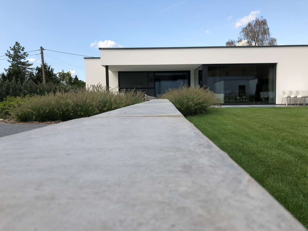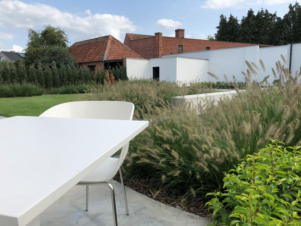 Bij totaalprojecten streeft Ken Verelst naar een synergie tussen in- en outdoor. “We trekken de lijnen door van binnen naar buiten zodat het totaalplaatje klopt. Terrassen en bestrating hou ik graag strak, het groen daarentegen, vloeiend en met een naturelle uitstraling. Esthetiek komt op de eerste plaats, maar dat betekent niet dat onze tuinen niet gebruiksvriendelijk zijn.“