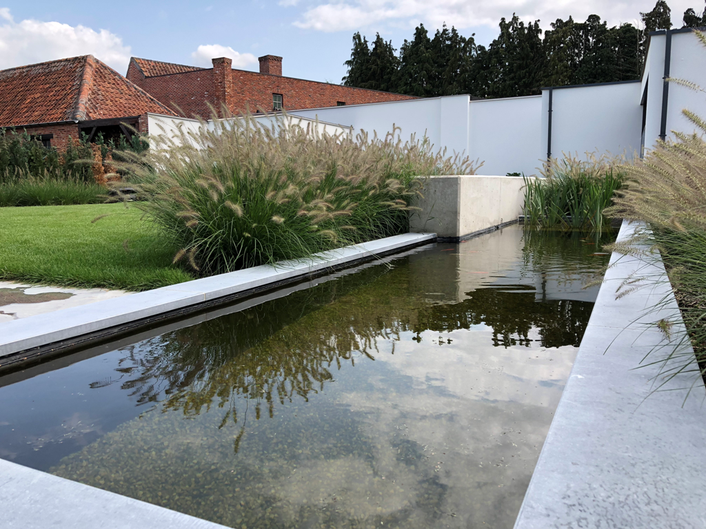 Elke tuin van Ken Verelst is een compleet gebeuren, van waterpartijen over tuinmeubilair tot een passend bijgebouw. Ken runt zijn groen architectenbureau samen met Ben. Samen sterk is hun devies. Bij de renovatie van een bestaande tuin of de aanleg van een tuin bij een nieuwe woning, wordt Tuinarchitectuur Ken Verelst best in de beginfase bij de zaak betrokken. Dit om het totaalproject mee in goede banen te leiden en zinloze kosten te vermijden. “In de nauwgezette planning en het voorbereidend werk schuilt een slimme investering en tegelijk een besparing. Er dienen buiten verlichtingspunten te worden voorzien bijvoorbeeld, of het is wenselijk om de vloer van het interieur naar het exterieur door te trekken.”