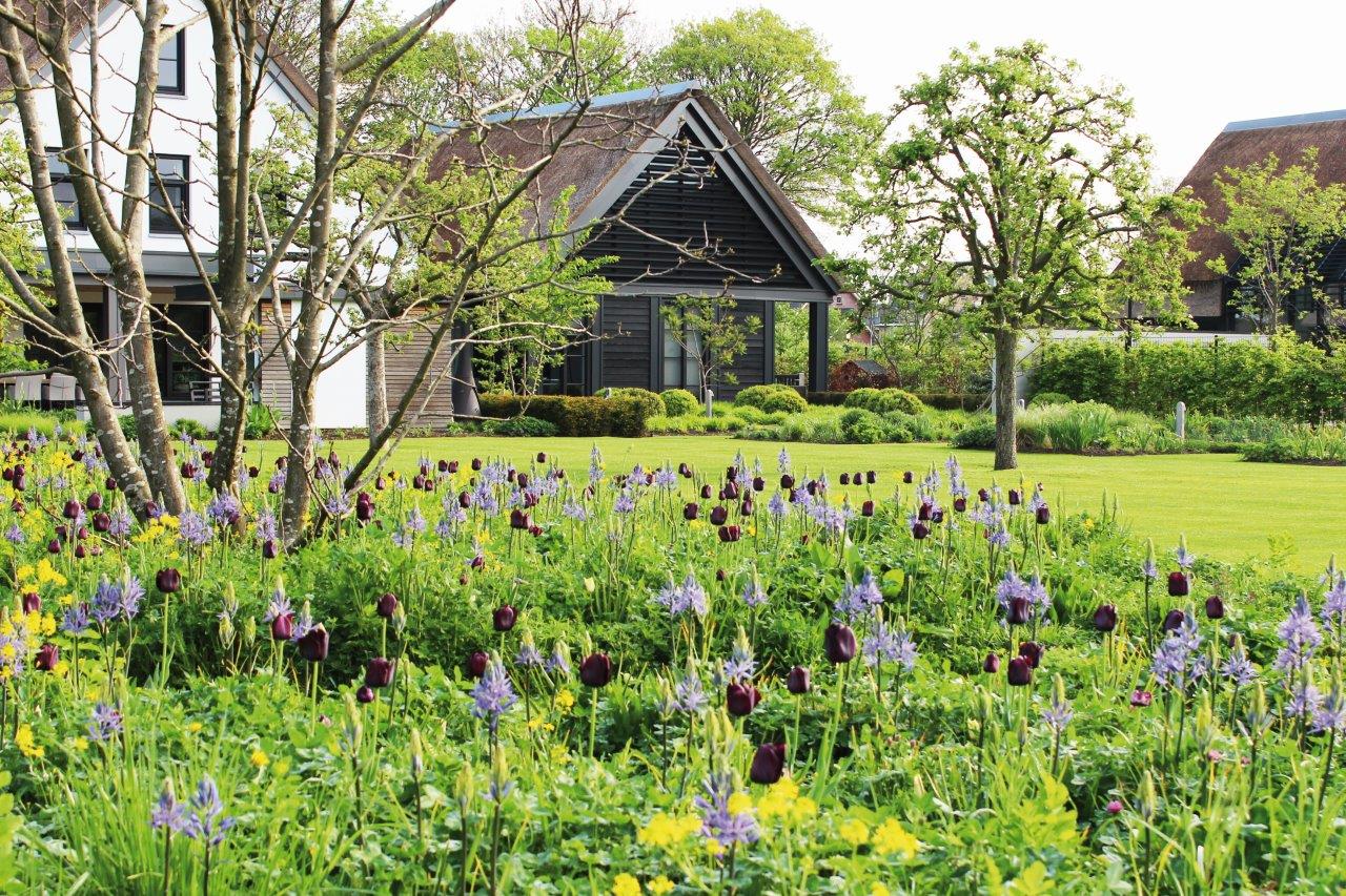 Net als bij een traditionele hofstede of boerderijtuin werd de tuin hier opgedeeld in verschillende zones: een boomgaard met fruitbomen, strakke bordervlakken die – als in een moestuin – de vorm aannemen van kweekbedden en een bloemenweide met inheemse kruiden en een speels slingerend gemaaid pad er doorheen. In de lente garanderen de bloembollen bovendien een kleurenspektakel waar je instant gelukkig van wordt. “In mijn ontwerp houd ik maximaal rekening met de belevingswaarde van de tuin tijdens alle seizoenen, dus niet alleen in het voorjaar of de zomer”, aldus de tuinarchitect. “Zo geniet je altijd van variatie en trakteert de tuin jou het hele jaar door op iets nieuws.”