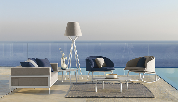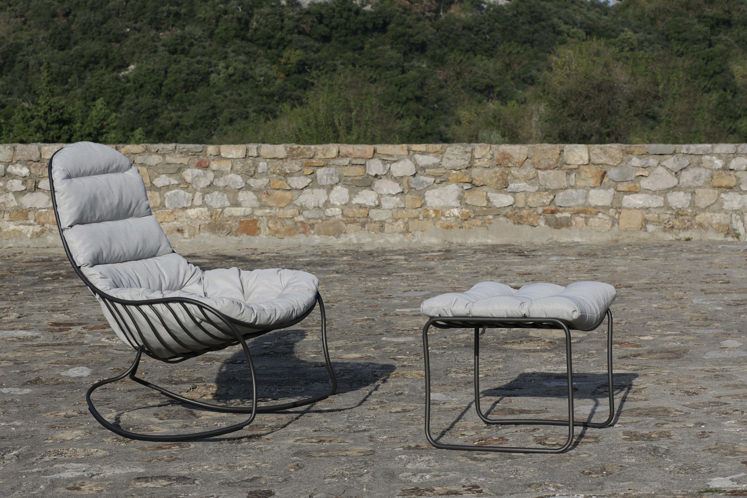 Cleo alu rocking chair, met Quick Dry Foam vulling en verwijderbare bekleding, als onderdeel van een loungecollectie van Talenti, design Marco Acerbis www.talentisrl.com