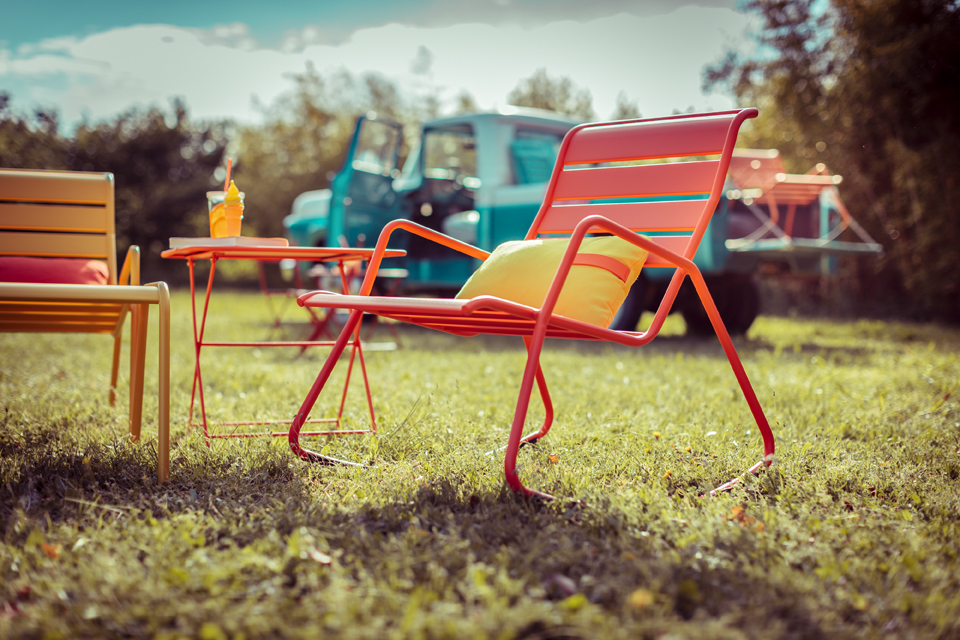 Schommelstoel uit de Fermob Monceau-reeks, vervaardigd in gepoedercoat buisstaal met keuze uit maar liefst 26 kleuren, design Studio Fermob www.fermob.com