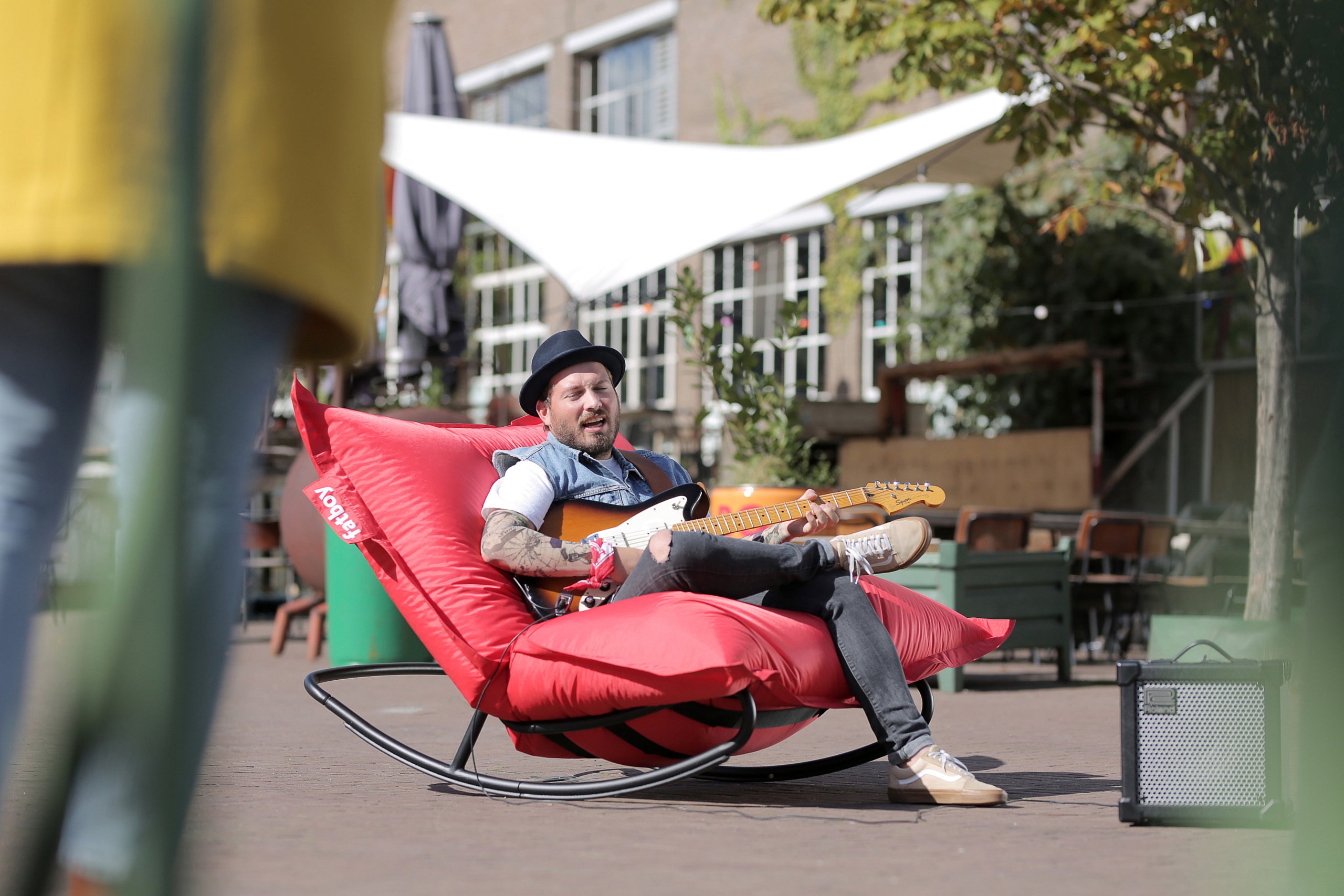 Rock ’n Roll frame van Fatboy in buisstaal om de Fatboy Original Outdoor zitzak om te vormen tot een comfy schommelstoel www.fatboy.com