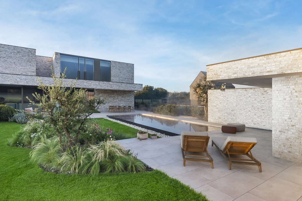 Met de oplevering van hun nieuwbouwwoning kwam niet alleen de woondroom van de bewoners uit. Ze besteedden meteen ook aandacht aan het ontwerp en de aanleg van hun tuin, met een op maat gemaakt overloopzwembad als absolute kers op de taart.